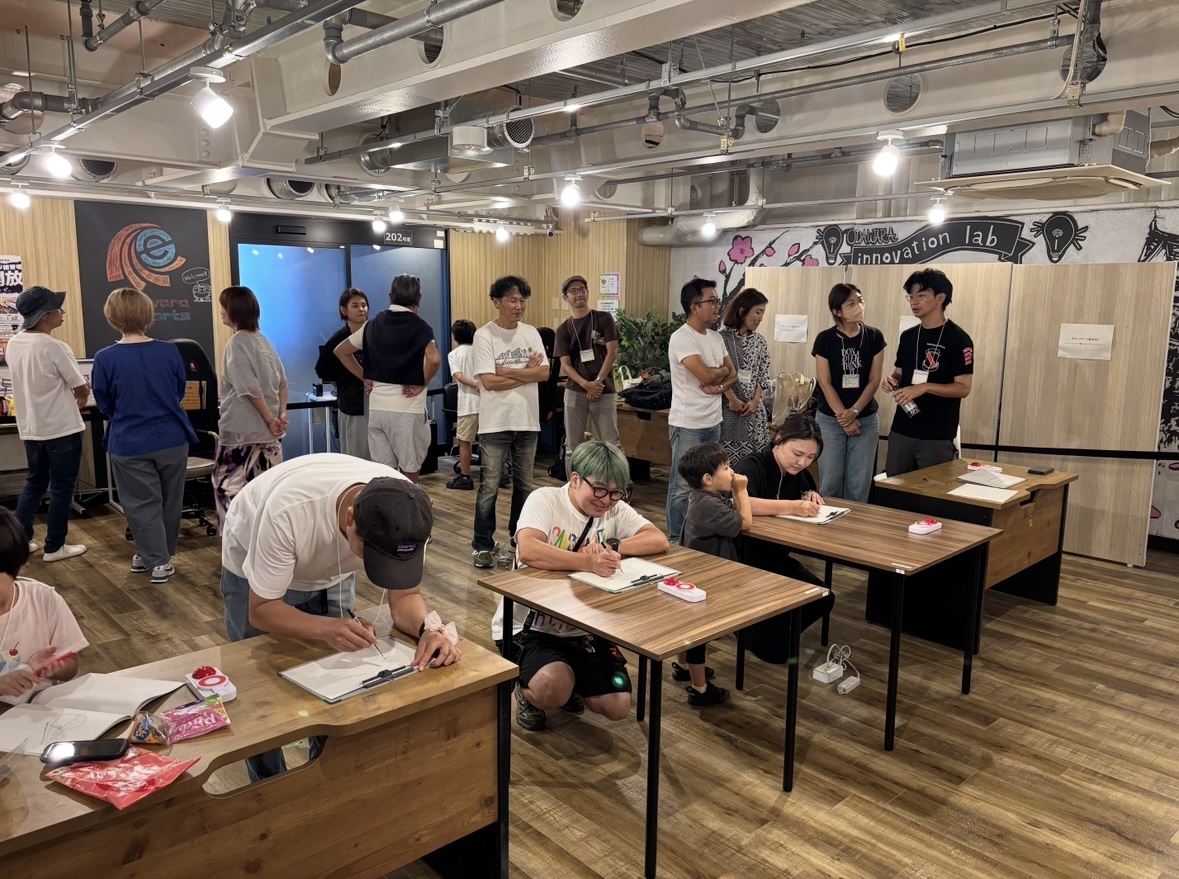 絵が苦手な方もいましたが、笑いの絶えない雰囲気の中で、チームで協力しながら次々とペンを走らせてくれました。回答タイムには各チームの絵を見て