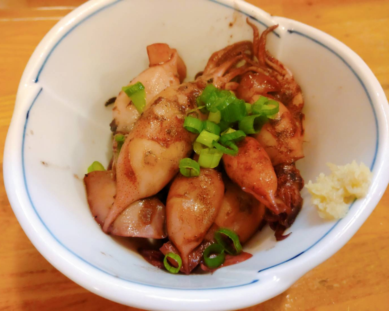 小ぶりなイカを香ばしく焼き上げ、イカの旨み、ほろ苦さが絶妙に絡み合う一皿です。日本酒との相性も抜群で、地元ならではの組み合わせを存分に楽しめます。